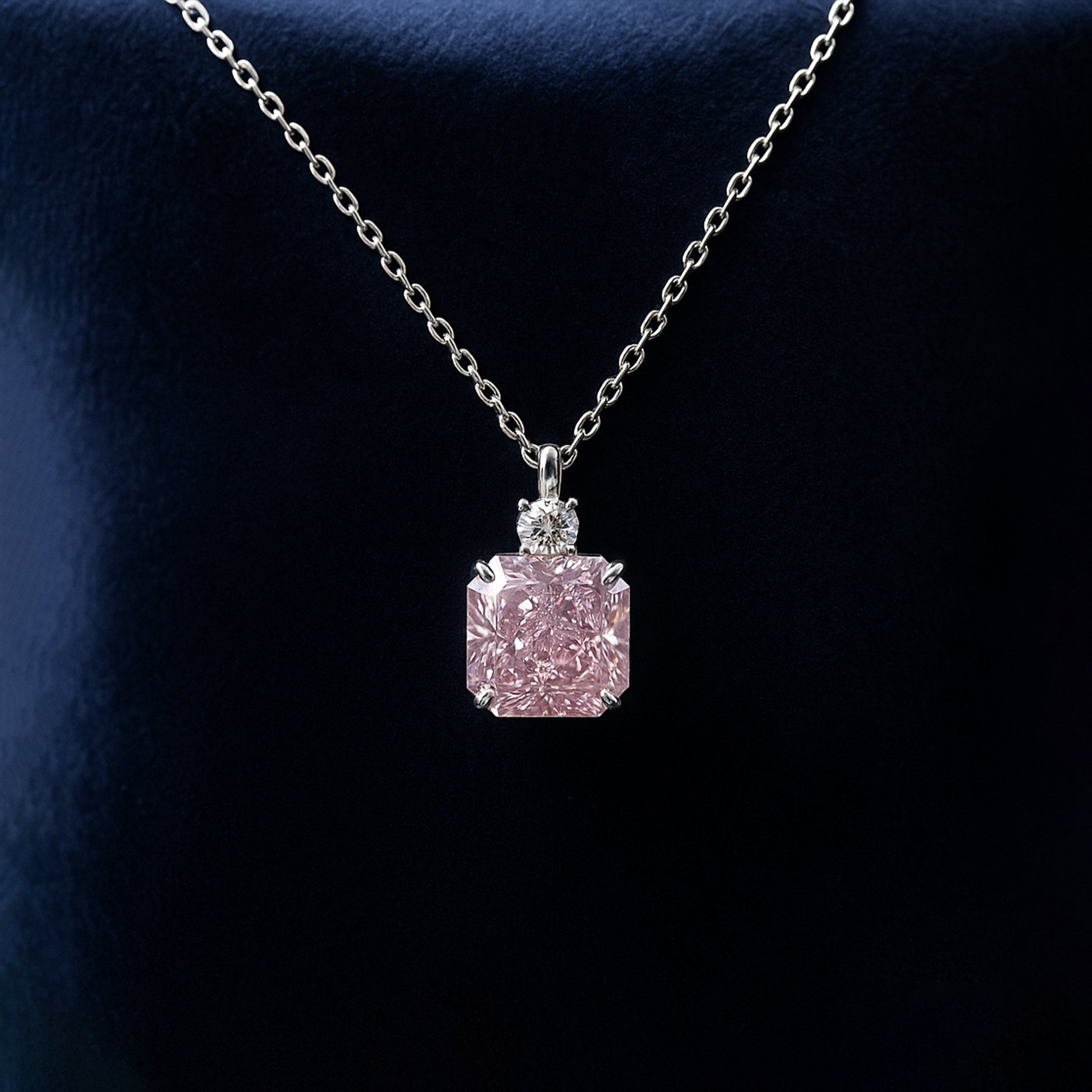 Graceful and captivating, this solitaire pendant showcases a radiant-cut pink CZ stone in a minimalist setting. Rhodium-plated 925 silver complements its subtle sparkle, making it a versatile choice for elegant evenings or chic daily wear.