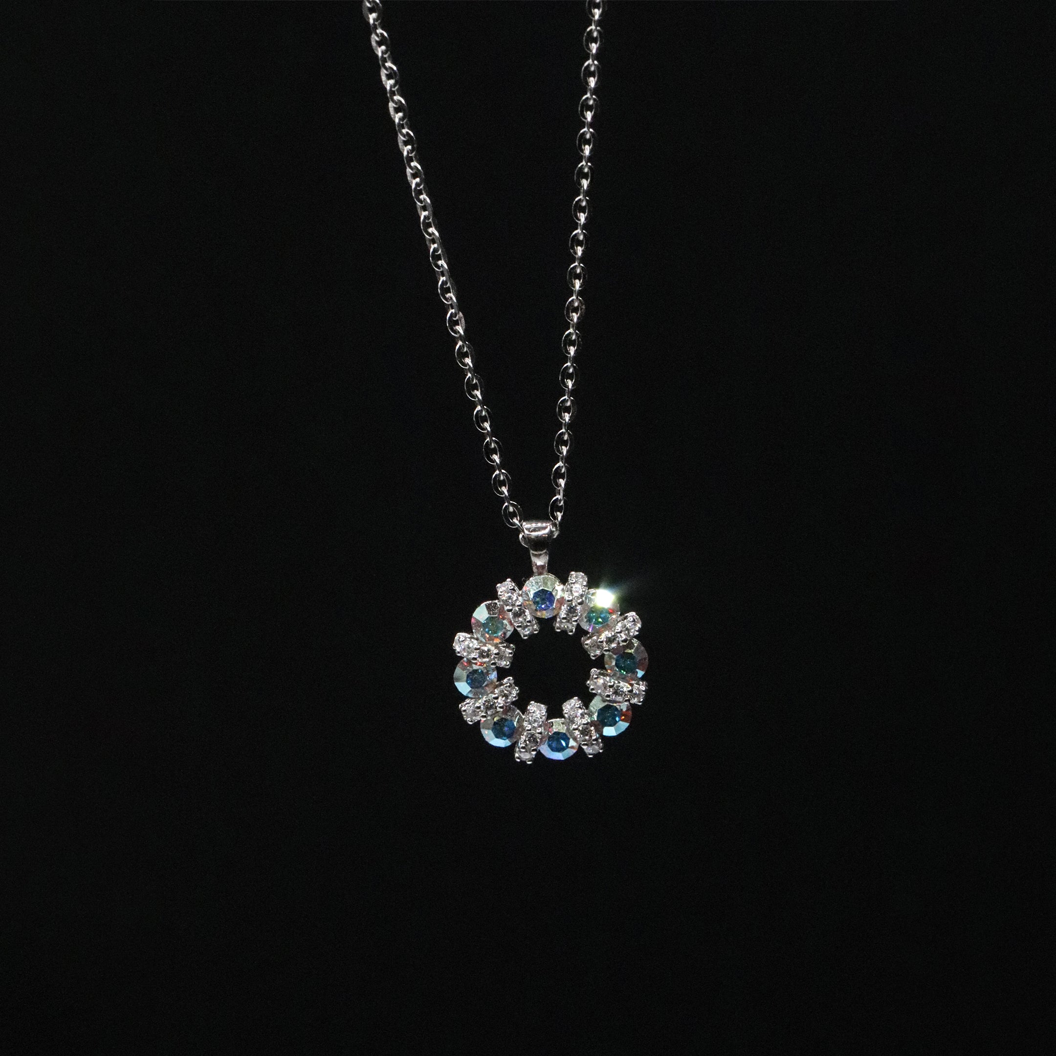 Design: Round pendant with alternating Aurora CZ and micro CZ details on a fine chain