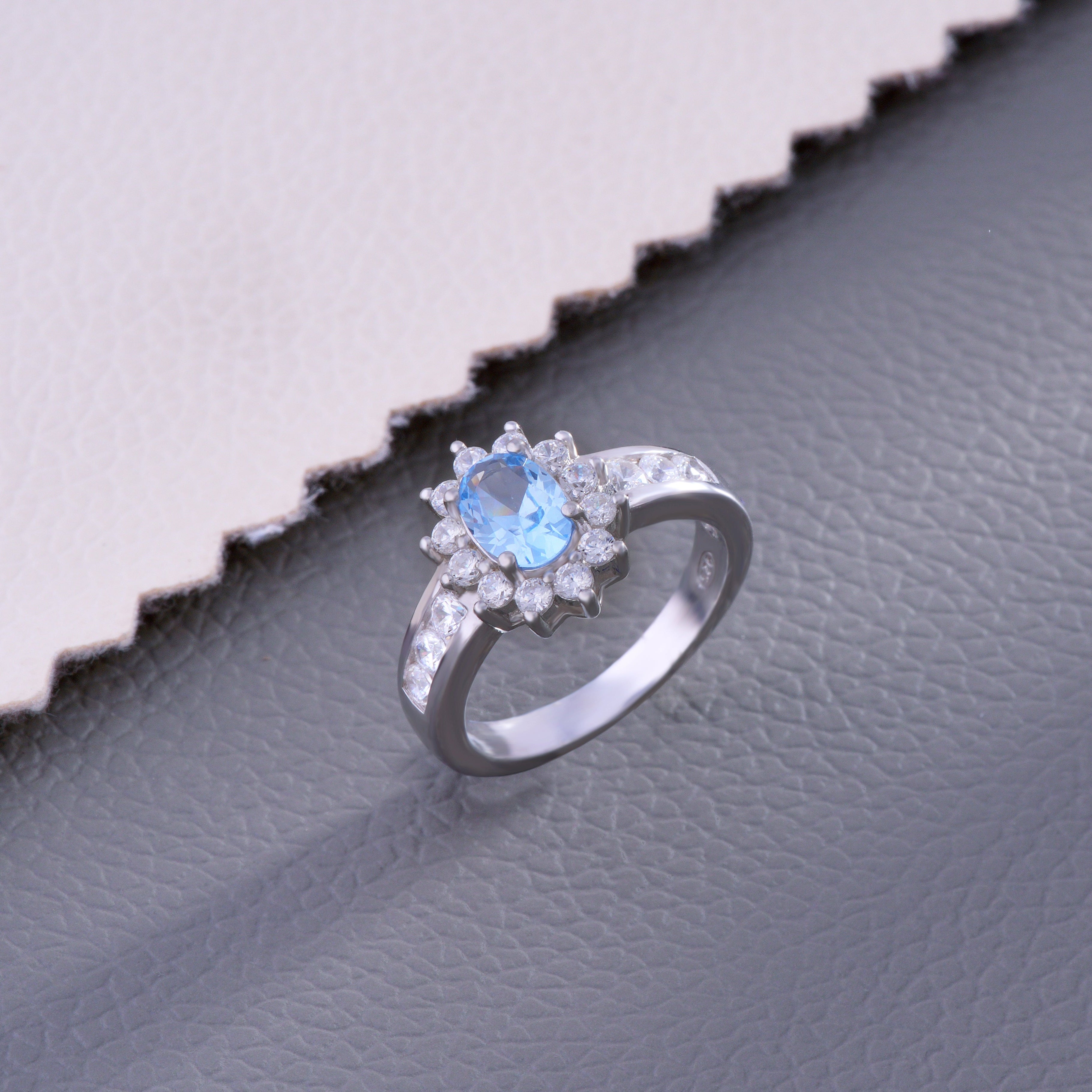A Dreamy expression of elegance — This Ring features a serene Center Aqua Stone surrounded by sparkling White CZ Diamonds. Perfect for those who adore Ocean-inspired hues and graceful designs.